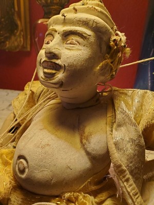 | $ 625.00 Purchase Information technology At present $19.95 Shipping Location: Scottsdale, United States Made from solid wood and existent stitched article of clothing. Faux gems are set into the robe. $ 50000.00 Buy It Now Free Shipping Location: Ann Arbor, United states Laila said, 'What is it like?'. Layla and Majnun — verse form of Hagiri Tabrizi. Layla and Majnun — drama in poesy of Mirza Hadi Ruswa. Upon Indian independence ... more than in 1947, the United Provinces were reorganised into the state of Uttar Pradesh, and Lucknow remained its capital. $ 195.00 Purchase It Now $8.75 Shipping Location: Bowie, United States String on queen side is partially attached. $ 9.99 $10.96 Aircraft Condition: Used Location: Chino Hills, United States Beautiful Vintage. Bully Condition! Sad Choice Up no available- e-mail me for a quote Exist sure to add together me to your! Bank check out my! Powered by On 08-Mar-xiii ... more at 22:01:48 EST. Seller added the following data: supreme. Supremewidgets. Supremeauctiononlinesoftware.widgets.GalleryBasic.swf. Supremewidgets. Supremeauctiononlinesoftware.widgets.FeedbackWidgetBasic.swf. $ 39.95 Buy It At present Free Shipping Status: Used Location: Napanoch, United states $ 35.00 $ix.25 Aircraft Location: Austin, The states Beautiful Ornate Oriental Horse Professional Marionette String Puppet Doll. In Fujian in s-e People's republic of china the genre has existed for a thousand years. ... more In Rajasthan in northward-west India it gave birth to genres which include many specialty acts. $ 150.00 Buy Information technology Now $16.x Aircraft Location: Oxford, The states A fine unreserved auction of fresh Asian antiques& decorative arts all offered at.99 cent starting bid! Lot 25831: Antique Javanese SE Asian Carved ... more Wood Split Head Wayang Golek Boob Statue Description: Antique Javanese SE Asian carved and polychrome painted woods Wayang Golek puppet. This is a rare example with the carve up head! The figure has an open rima oris with fangs on each end and has cow animal hibernate hair and original clothing. Size: Measures 25" tall as you meet it x 6 i/4" wide at the shoulders. Age: 19-20th C Condition: I believe the easily are replacements. Tattering to the clothing, hide hair as is, paint with wear and small chips, photos bear witness all! Please Note: Nosotros practise our very all-time to describe each and every lot we sell accurately pointing out all flaws that would impact a pieces value and or aesthetics. When buying antiques y'all must expect normal clothing and tear equally yous are buying a previously used slice. We include several photographs from every angle every bit if you were property the piece in your hands. So certain to read the description carefully and take your time browsing our photos. When buying antiques the status and quality of a piece can exist quite arbitrary from i person to another, it is you who makes the final determination equally to a pieces quality and condition and whether to purchase or not. Only bid if you intent to follow through with the transaction. Delight electronic mail through the ebay contact seller icon for any and all questions you may have before placing your concluding bid. Thank You and Enjoy! 100% Customer Satisfaction Guarantee To Be As Described Or Your Money Back! Fine Quality Antique Auctions The Best Friendly Client Service Fast Professional Safe Worldwide Shipping Powered by $ ten.99 Buy It At present $12.65 Shipping Location: Winston Salem, U.s.a. Not sure if this is truly "African" or non, merely it is the all-time I could observe in the search for categories. Marionette is in excellent condition and will ... more than brandish well or used in a show. $ 675.00 $38.00 Shipping Location: Lees Tiptop, United states of america The antiquity was reviewed and published by internationally renowned tribal arts expert Irwin Hersey in 1975. Subsequently his passing, the marionette was sold ... more by the Poolos Family forth with several other artifacts from the gallery collection. $ 39.95 Buy It Now $ten.95 Shipping Location: Marble Falls, United States Overall skilful condition. In that location is a small-scale chip on nose. Head and shoes are removeable and rotate. I of the shoes has a scrap in it (tin can be seen in pictures-shoes ... more are made out of a dirt blazon textile). $ 18.46 $32.58 Shipping Location: HOVE, United kingdom of great britain and northern ireland Hand craved Wayang Golek Pandawan wooden puppet. Excellent condition $ 24.sixty $32.90 Aircraft Location: GRAVESEND, United Kingdom Hand painted face. Adept used condition, with general historic period related wear. $ 15.99 Purchase It Now $half-dozen.15 Shipping Location: Congers, Us Store Home Near Us Feedback Add To Favorites New Arrivals Ending Soon Contact Usa SHOP CATEGORIES. PRICE. $ Enter minimum price to $ Submit price range ... more WE Accept. UNBRANDED Vintage Wooden Hand Carved Painted Pinocchio Cord Marionette Puppet Product Details Product Condition UNBRANDED Vintage Wooden Hand Carved Painted Pinocchio Cord Marionette Puppet Measurements: Pinocchio Stands Approximately 16.5" tall(Non including stings) Measurements with strings: 28" Status Details: Cherished by its previous owner. Signs of use include: the left leg starting to become loose& wear on wood from historic period. Photos are a must see. Not bad add-on to your collection. Not bad value! Run across Liberty Shop's terms of sale. Cherished past its previous possessor. Signs of utilize include: the left leg starting to become loose& wearable on wood from age. Photos are a must see. Great addition to your collection. Great value! UNBRANDED Vintage Wooden Hand Carved Painted Pinocchio Cord Marionette Puppet Measurements: Pinocchio Stands Approximately 16.5" tall(Not including stings) Measurements with strings: 28" Condition Details: Cherished by its previous owner. Signs of apply include: the left leg starting to become loose& wear on wood from age. Ph
